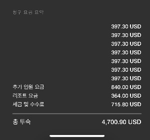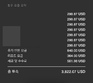 우리는 3명이 투숙할 예정이라 추가 인원 요금을 포함해서 리조트 요금 및 세금 등을 추가하니 4,700.90달러,